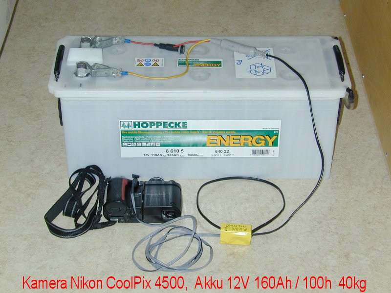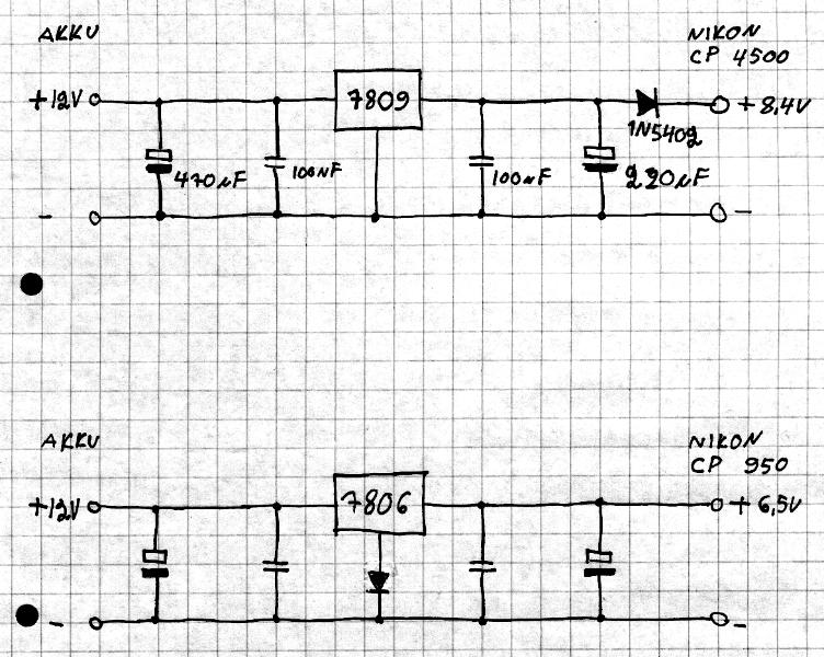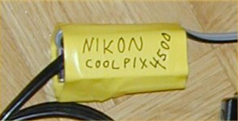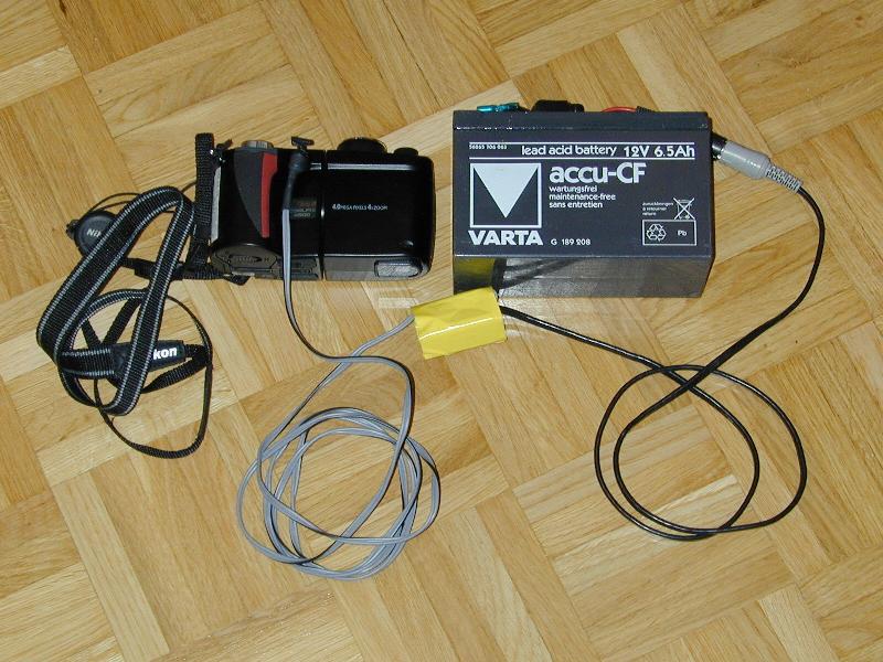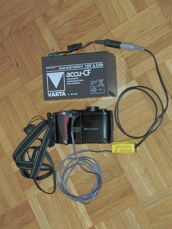 Nikon CoolPix 4500 and CoolPix 950 power supply from 12V sealed leadacid battery or transformer.